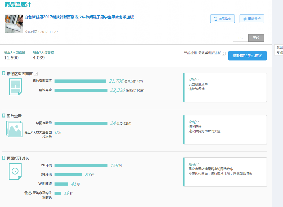 3.平均七天停留时长20秒以上,商品温度计课可查看
